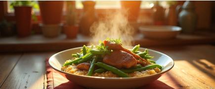 Potrawka z królika z fasolką szparagową i kaszą